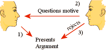 Person B asserts that A makes argument X because it is in A's interest.