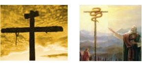 The serpent on the cross is the image of the serpent on the Tree of Life in the garden that was tempting Eve. It is fascinating that it was the same image nailed to the stake that represents the death of Messiah for our sins: