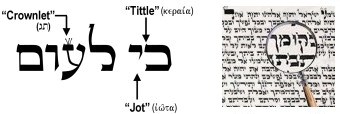 The Jewish sages assumed that there are no "unnecessary words" in the written Torah. All 304,805 letters are carefully counted by the soferim (scribes). Moreover, Yeshua spoke about "kotzo shel Yod" (קוֹצוֹ שֶׁל יוֹד), that is, the smallest stroke atop the smallest Hebrew letter, in order to stress that every detail of God's revelation has its purpose (Matt. 5:18; Luke 16:17). Every "jot and tittle" has its place, and this implies that words spelled in unusual ways, the exact order of words in a phrase, and various textual oddities (such as redundant words, oversized or undersized letters, etc.) were intended to teach us something we might otherwise not have known.